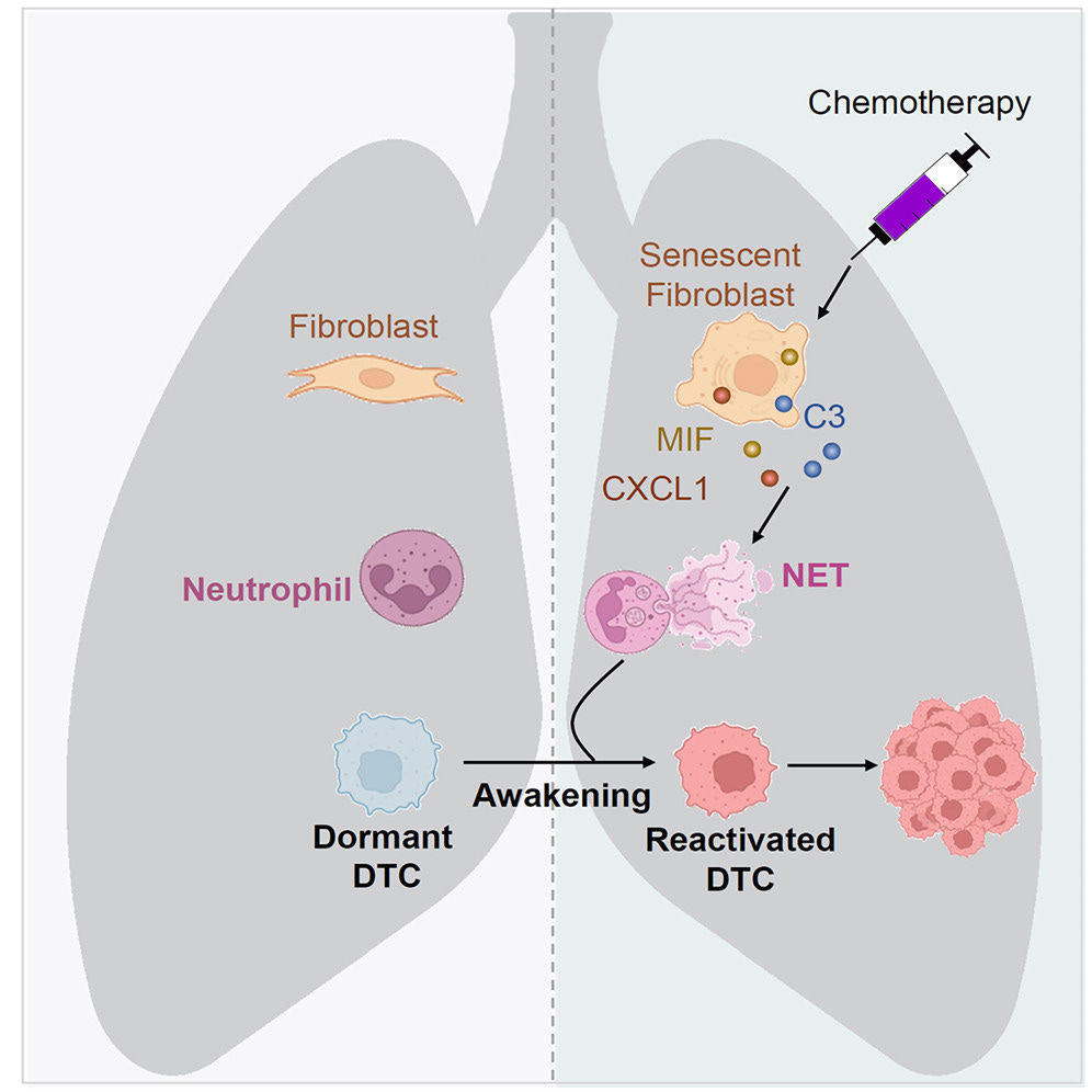 Chemotherapie bevordert uitzaaiingen door verborgen kankercellen te activeren door middel van ontsteking en immuunactivatie.