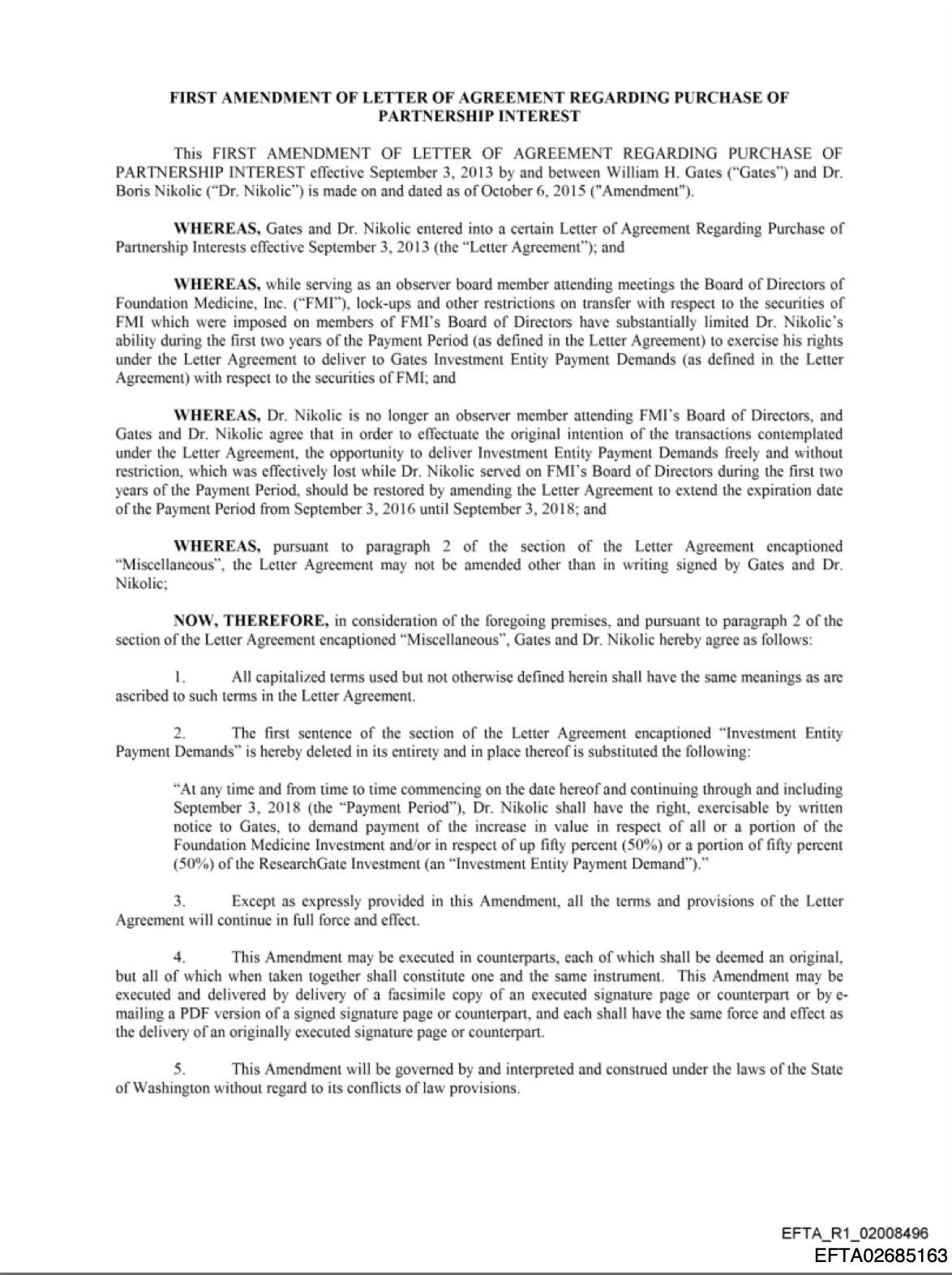 Ji wijst ook op documenten waaruit blijkt dat Bill Gates in 2013 schriftelijk verzocht dat Epstein zou optreden als vertegenwoordiger van Boris Nikolic. Deze overeenkomst bevatte expliciete vrijwaringen. Hij presenteert dit als bewijs dat Epstein bewust en formeel werd ingezet binnen het netwerk rond Gates-gerelateerde activiteiten.