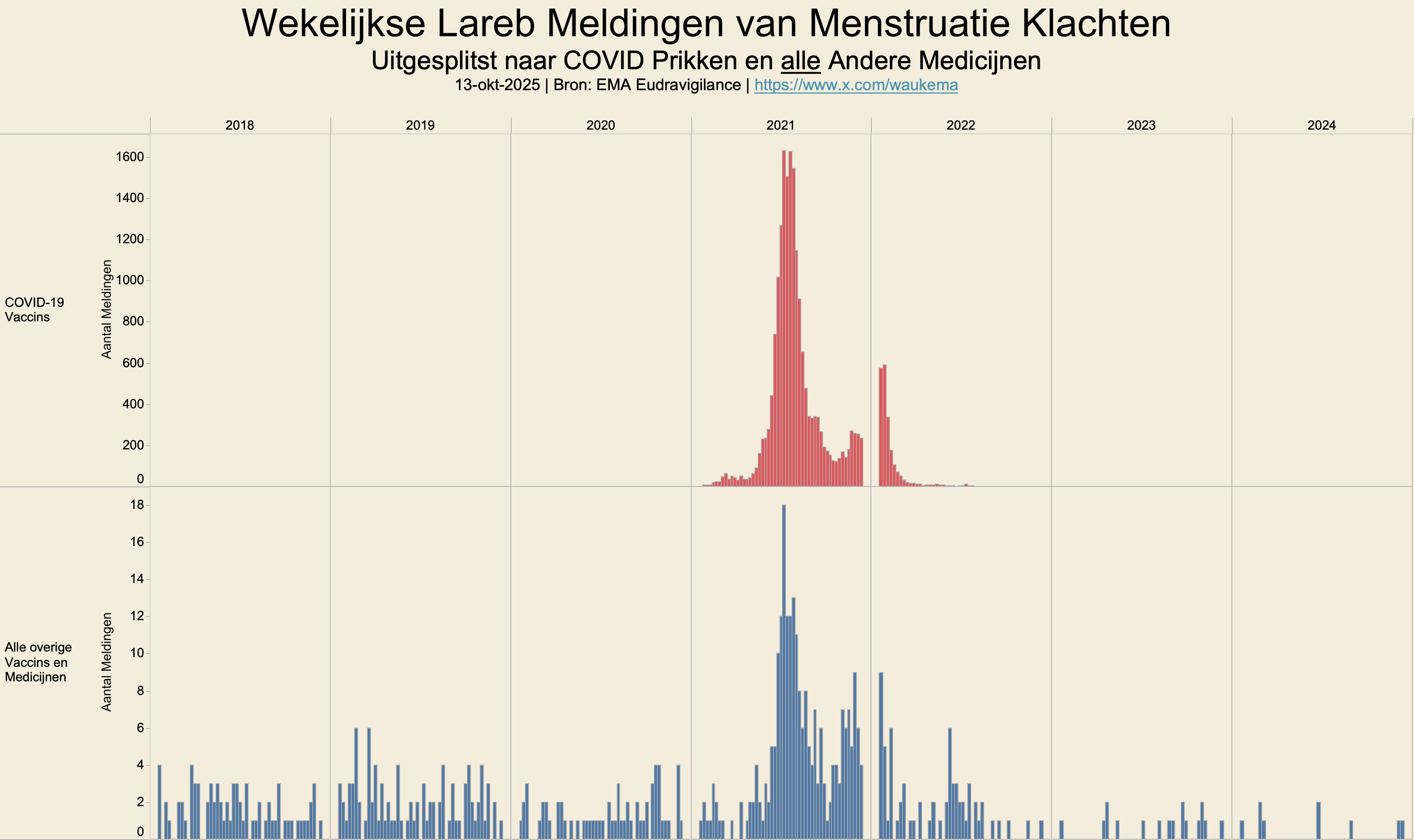 In zeven jaar tijd waren er 565 meldingen, zonder Covid-prik. Ruim 20.000 vrouwen meldden klachten na hun Covid-prik.