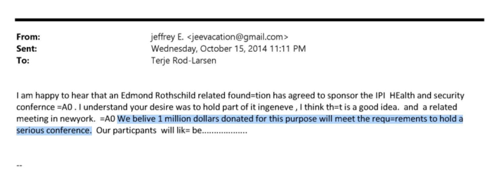 De documenten suggereren dat Epstein een financieringsbedrag van circa één miljoen dollar aankondigde. Hij had in dezelfde periode financiële relaties met entiteiten gelieerd aan de Rothschild-groep.