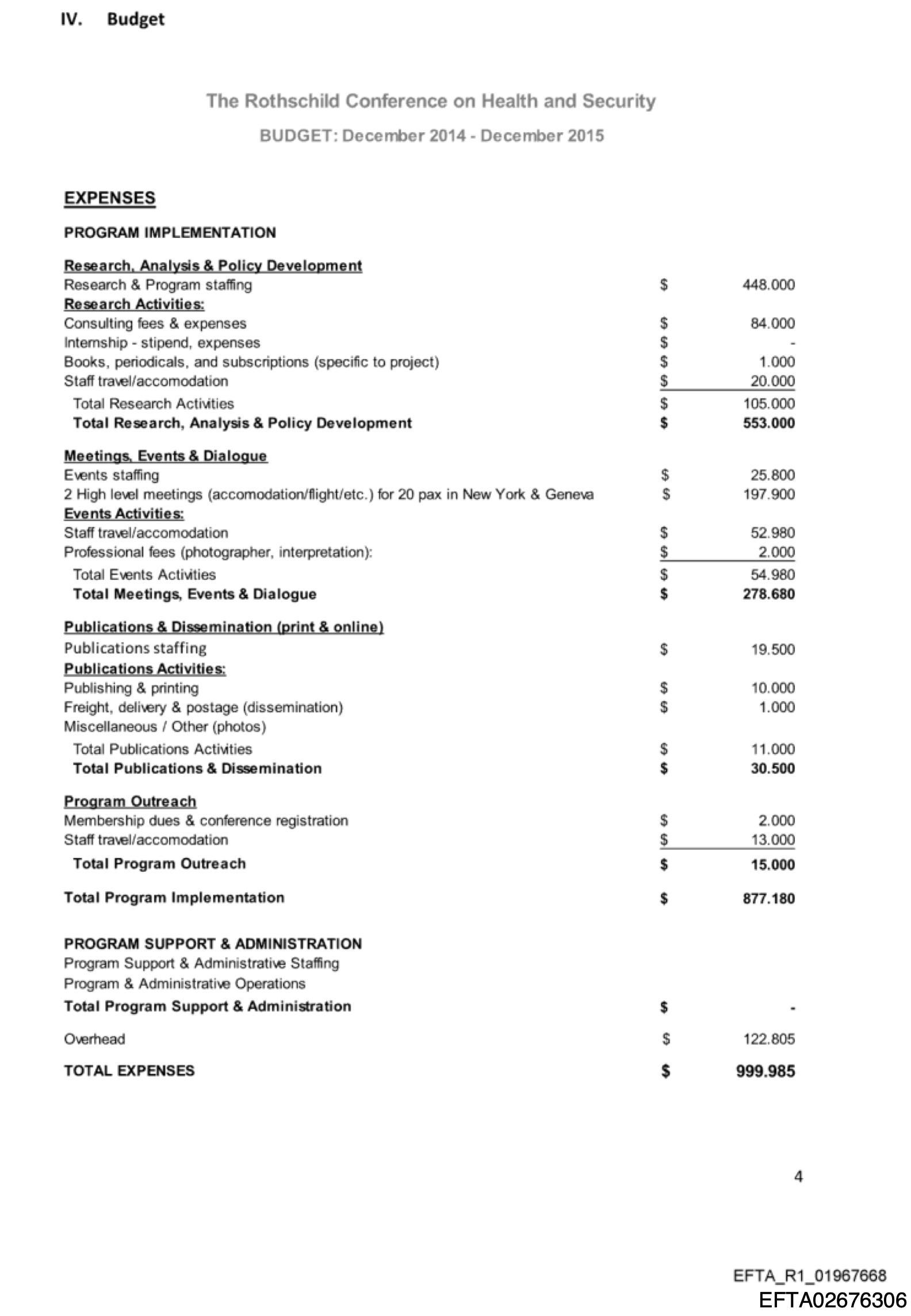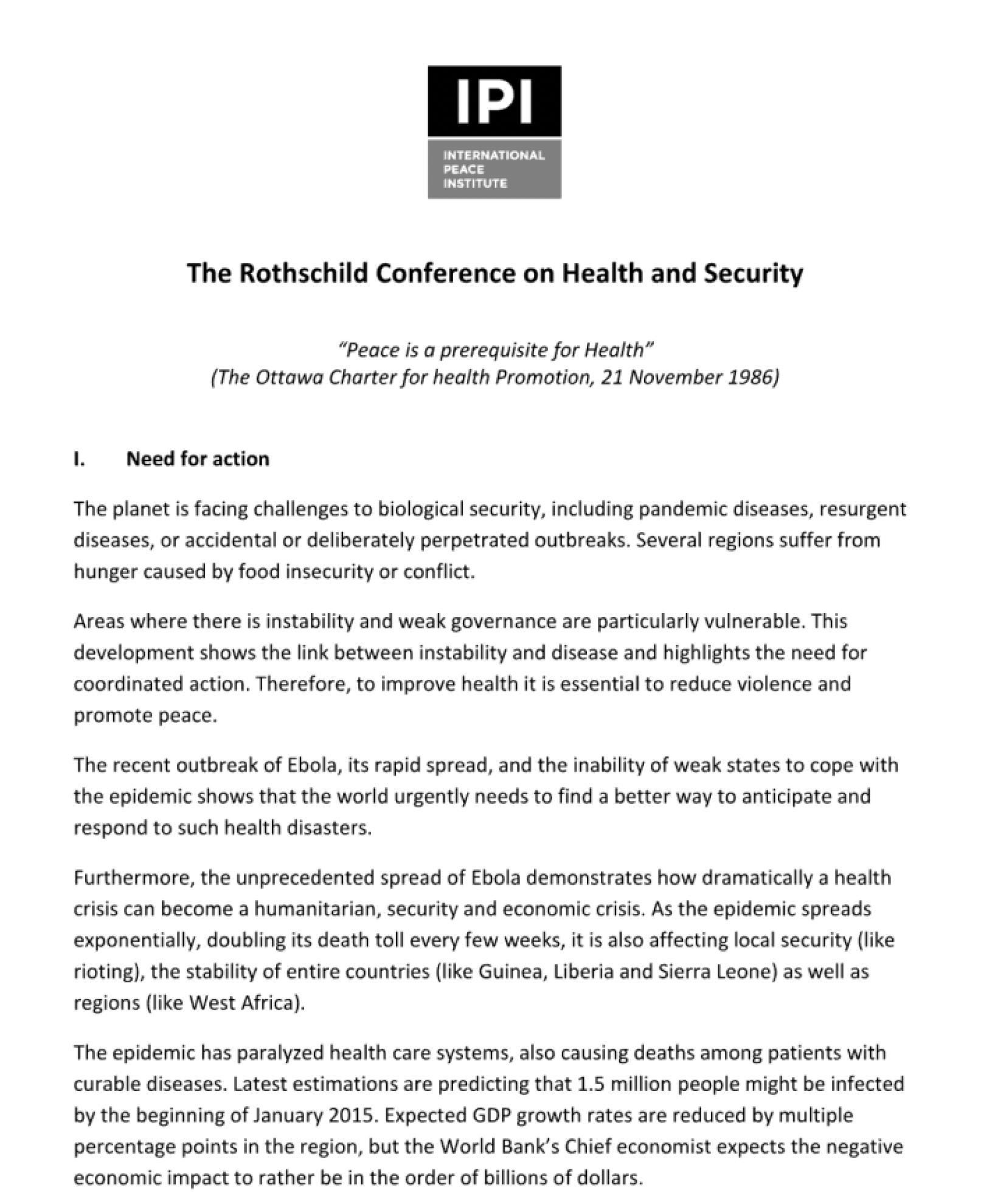 Volgens interne documenten had de conferentie aanvankelijk een andere naam: “The Rothschild Conference on Health and Security”. In deze stukken worden onder meer de Edmond de Rothschild Foundations en de Bill & Melinda Gates Foundation genoemd als organisatorische partners, naast internationale instellingen zoals de WHO en UNHCR.